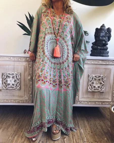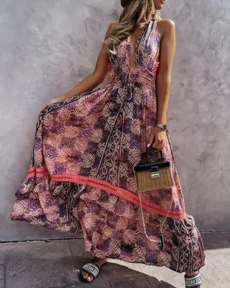 Be the first to review “Cold-Shoulder Tie-Dye Print Casual Maxi Dress”